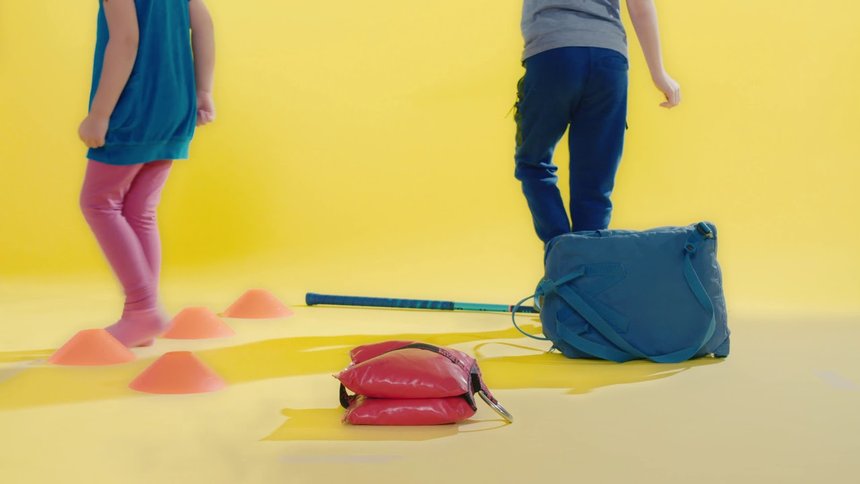 Placera ut olika föremål på golvet så att det bildar en bana. Utmaningen är sedan att ta sig fram längs banan genom att gå, klättra och hoppa mellan de olika föremålen – utan att nudda golvet!